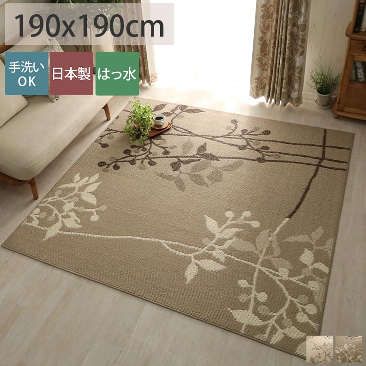 ラグ カーペット じゅうたん ラグマット はっ水 日本製 手洗い可 おしゃれ かわいい ブラウン リーフ 柄 モダン ホットカーペット 床暖房対応 オールシーズン ラグ専門店 新生活<リリス/約190x190cm>