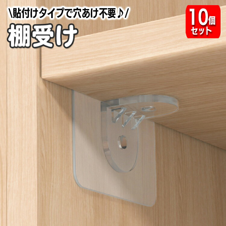 | 送料無料 棚受けフック 10個セット 粘着タイプ L型棚受け ダボ 棚ダボ 収納家具用部品 クリア 透明 貼り付け 穴あけ不要 壁掛けフック 棚板追加 日用品雑貨 簡単 便利