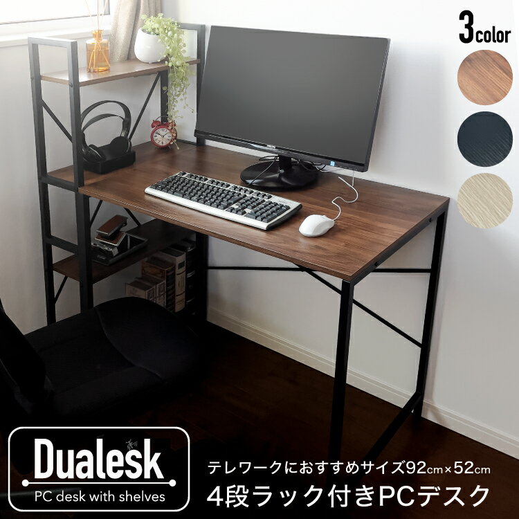 地球家具 ラック付き パソコンデスク 112cm 【Dualesk デュアレスク】 木製×スチール 収納ラック付 左右対応 収納 棚 PCデスク オフィスデスク パソコンテーブル 勉強机 書斎机 書斎デスク 学習机 学習デスク 勉強机 おしゃれ 一人暮らし 新生活