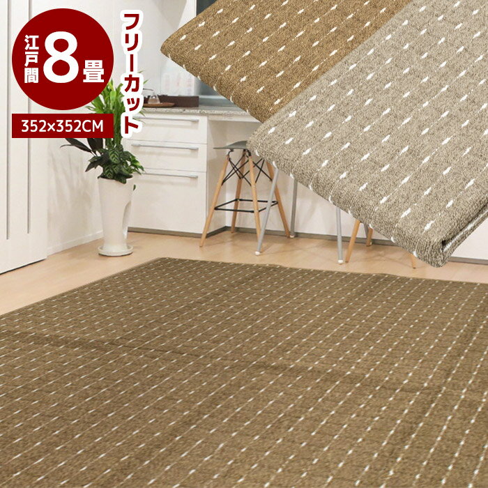 | カーペット 江戸間 8畳 352×352 フリーカット ストライプ ラグ ラグマット 大判 ホットカーペットカバー 床暖房対応 平織り チェイス