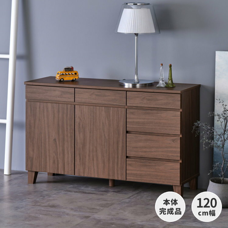 | 収納 収納家具 リビング サイドボード キャビネット ロータイプ リビングボード チェスト たんす 寝室 北欧 引き出し 壁面収納風 木製 ミディアムブラウン 幅120 2年保証 RYON ISSEIKI