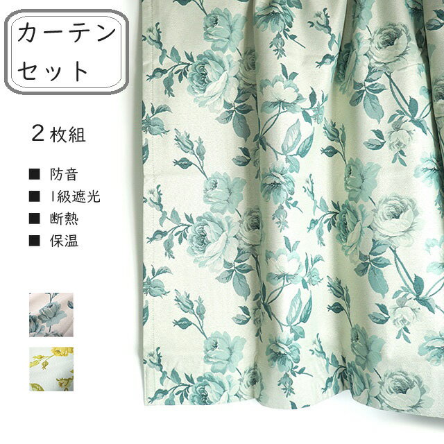 | <カーテン>幸せの風水フラワー 多機能 ジャカード織 洗える 防音 断熱 保温 1級遮光 花柄カーテン インテリア 1枚組/2枚組(幅100~200cm/丈90~230cm) イエロー・ブルーグリーン 2色