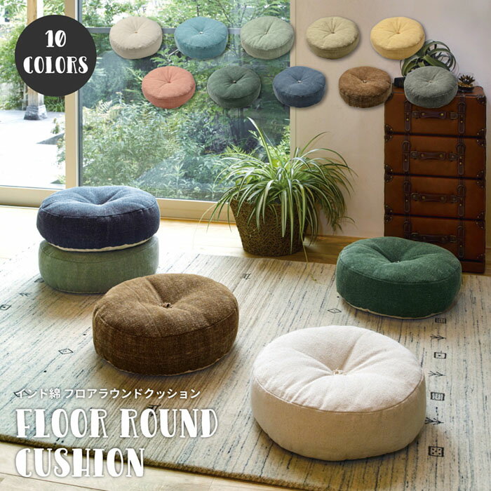 | カラーが選べるデニム風生地のフロアラウンドクッション 約45×12cm フロアクッション 丸型 クッション ラウンドクッション 丸 まる 円 座布団 インド綿 カラフル 椅子 椅子用 厚め シンプル ナチュラル 無地
