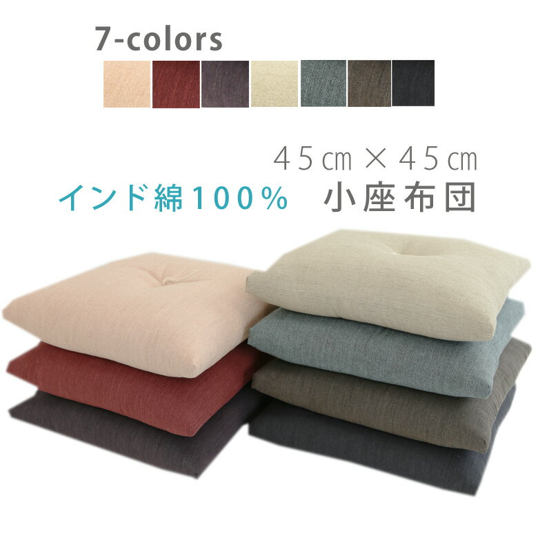 洋室、和室、フローリング、椅子にも合う 素敵なデザイン!同シリーズ7デザイン揃っているので、お気に入りが見つかるはず! サイズ 小座布団 45×45cm 側地 綿100% 中綿 綿100% わた量 0.6kg 京都・日本製