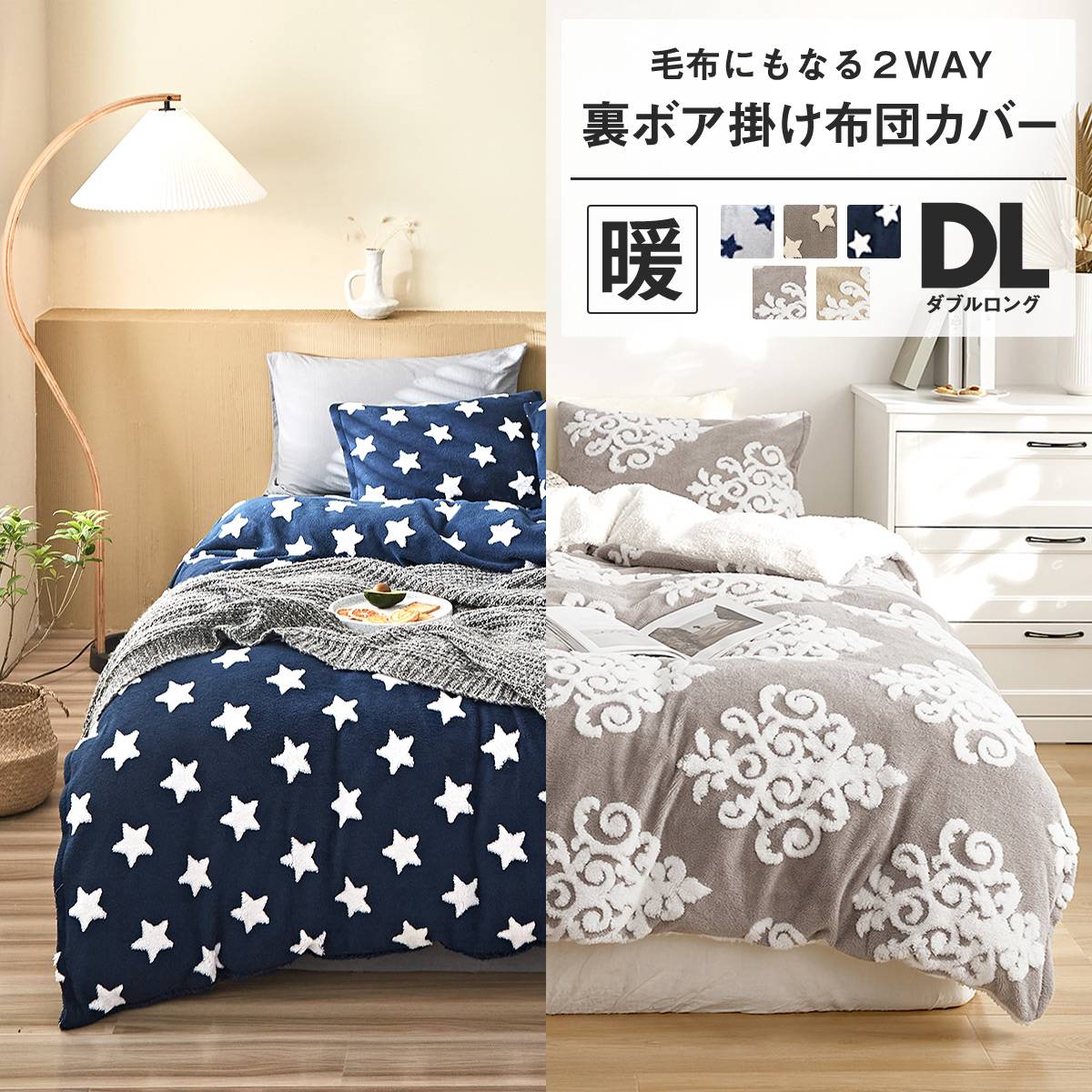 [ 毛布にもなる2way ] 裏ボア掛け布団カバー DL *お買い得なお揃い枕カバー1枚プレゼント中* 寒い冬、布団に入ってもひやっとしない。