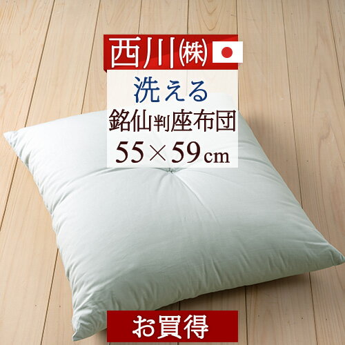 マラソン★最大5,000円クーポン 座布団 銘仙判 西川 日本製 側生地「綿100%」洗える 東京西川 西川産業 座り心地が快適 ウォッシャブル 無地 ヌードざぶとん 中芯 1枚から 55×59cm 座ぶとん