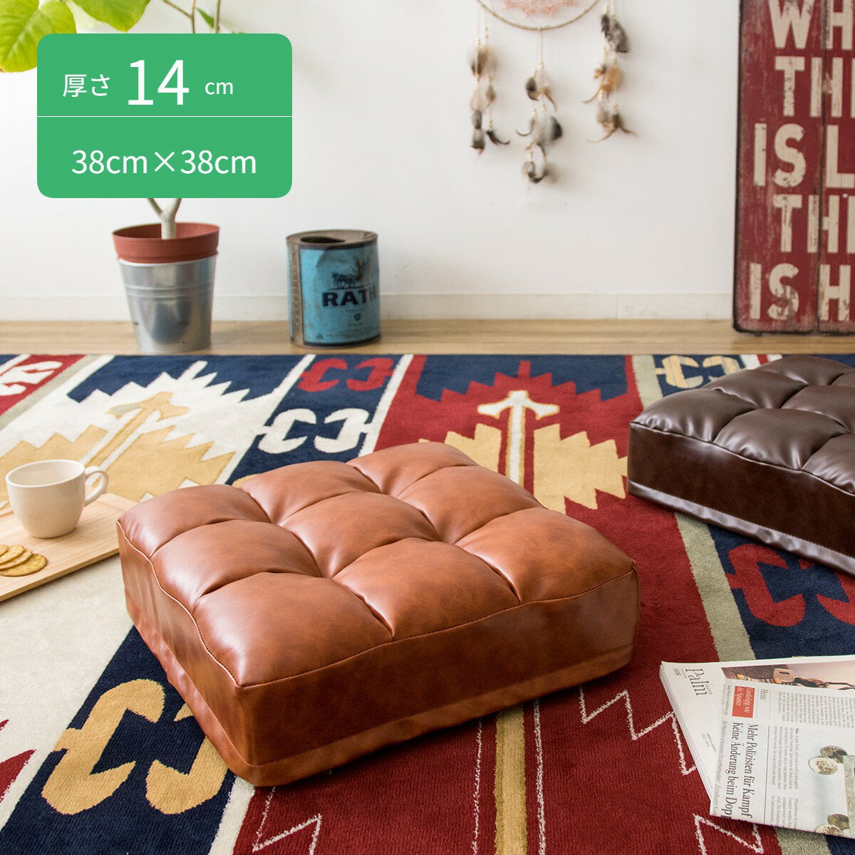 | 座布団 腰痛 クッション かわいい レザー 幅38×奥行き38×高さ14cm おしゃれ 大きい 北欧 四角 座椅子 座イス フロアクッション 疲れない 厚い 厚手 リビング座布団 シンプル モダン キャメル ブラウン ブラック レッド
