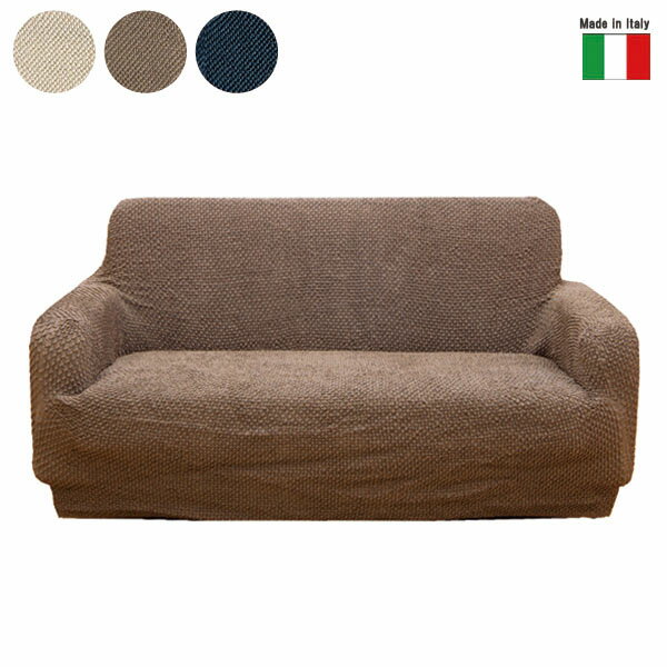 | イタリア製 フィットソファカバー エレガンテ(ELEGANTE)アーム付き3人用 【送料無料】 肘掛け 模様替え ストレッチ コットン 綿 無地 ベージュ ブラウン ブルー ※ソファカバーのみの販売です。