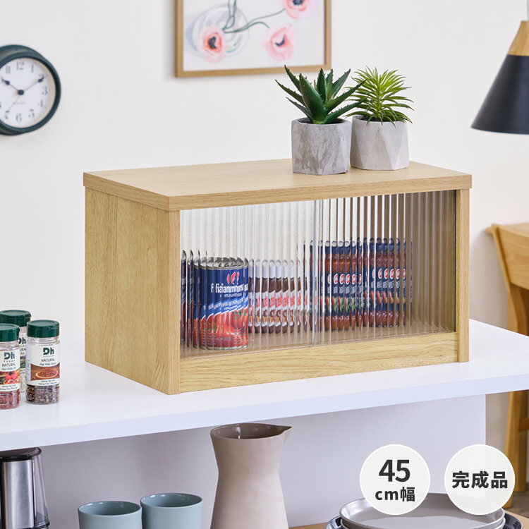 | 【8/15限定!ポイント5倍!】卓上収納 スパイスラック 収納家具 調味料ラック キッチン収納 幅45 カウンター上 薄型 カトラリー 調味料 スリム 引き戸 完成品 CASETTA ISSEIKI