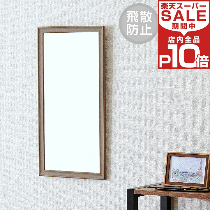 | 【全品P10倍★9/4 20:00〜9/11 1:59】鏡 壁掛けミラー ウォールミラー 幅30 高さ60 縦横自由 幅60 高さ30 飛散防止 姿見 すがたみ かがみ おしゃれ 木目調 北欧 韓国 かわいい 玄関 リビング 子供部屋 一人暮らし ブラウン