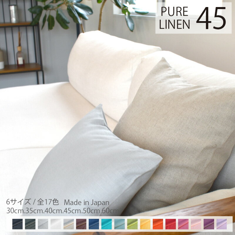 | クッションカバー 45×45cm リネン 無地 [ 日本製 ] 麻 100% 丸洗いOK 「全17色」 ナチュラルな色合い 自然の消臭防臭 麻100%の気持ち良いシャリ感 清涼感 おしゃれ ブルーグレー パープル ピンク ゆうパケット[ 送料無料 ] ss