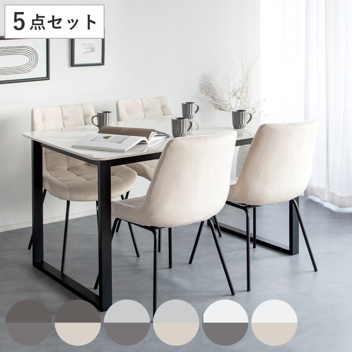 ※商品ページ内にはデザイン違いの画像を一部使用しています異素材で見せるスタイリッシュなダイニング5点セット絶妙なニュアンスや色合いが目を惹くセラミック天板のテーブルと、高級感のあるキルティングチェアのダイニング5点セットです。