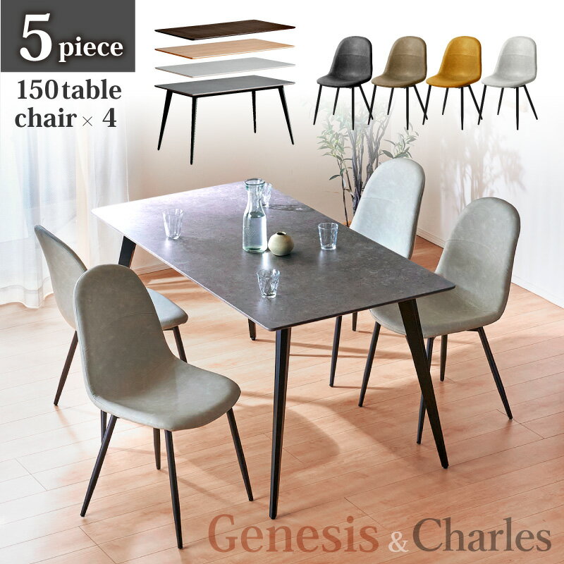 | 5%クーポン+P2倍 16日迄★ ダイニングセット ダイニングテーブルセット 幅150 150cm 5点セット 4人掛け 4人用 ダイニング 食卓 テーブル セット おしゃれ グレー ブラック ホワイト ベージュ 木目調 石目調 ナチュラル ジェネシス150テーブル&シャルル