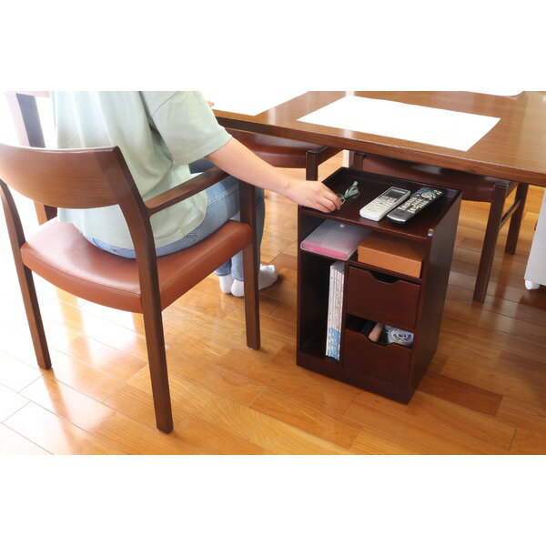 | テーブル下ワゴン 収納ワゴン 幅35cm ブラウン 木製 天然木 桐材 軽量 隠しキャスター付き 袖机 収納家具
