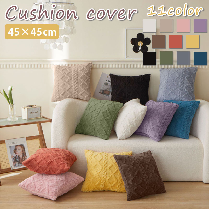 | 【900円OFFCP-3buy】\当日発送/ クッションカバー 45×45cm ニット柄 ふわふわ かわいい 模様替え 新生活 クッション カバー 洗える 北欧 ナチュラル 一人暮らし リビング ソファ ベッド プレゼント ギフト やわらか おしゃれ カフェ モダン シンプル ニット インテリア