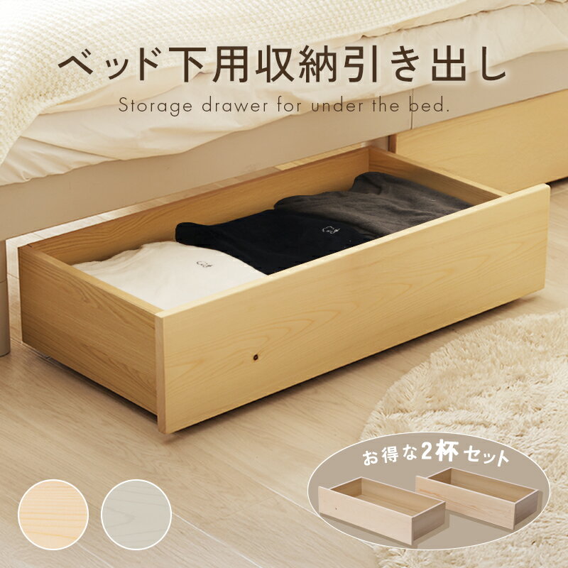 | ベッド下収納ボックス 収納ケース 引き出し収納 2杯セット キャスター付き 大容量収納 天然木 シンプル ナチュラル すき間収納 デッドスペース 収納家具
