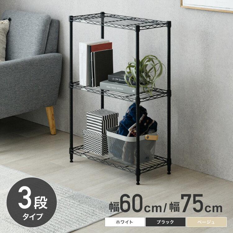 【75W】幅68×奥行23cm 棚段数 3段 棚1枚あたり耐荷重 65kg *耐荷重は均等荷重をかけた場合の測定値であり、保証値ではありません。